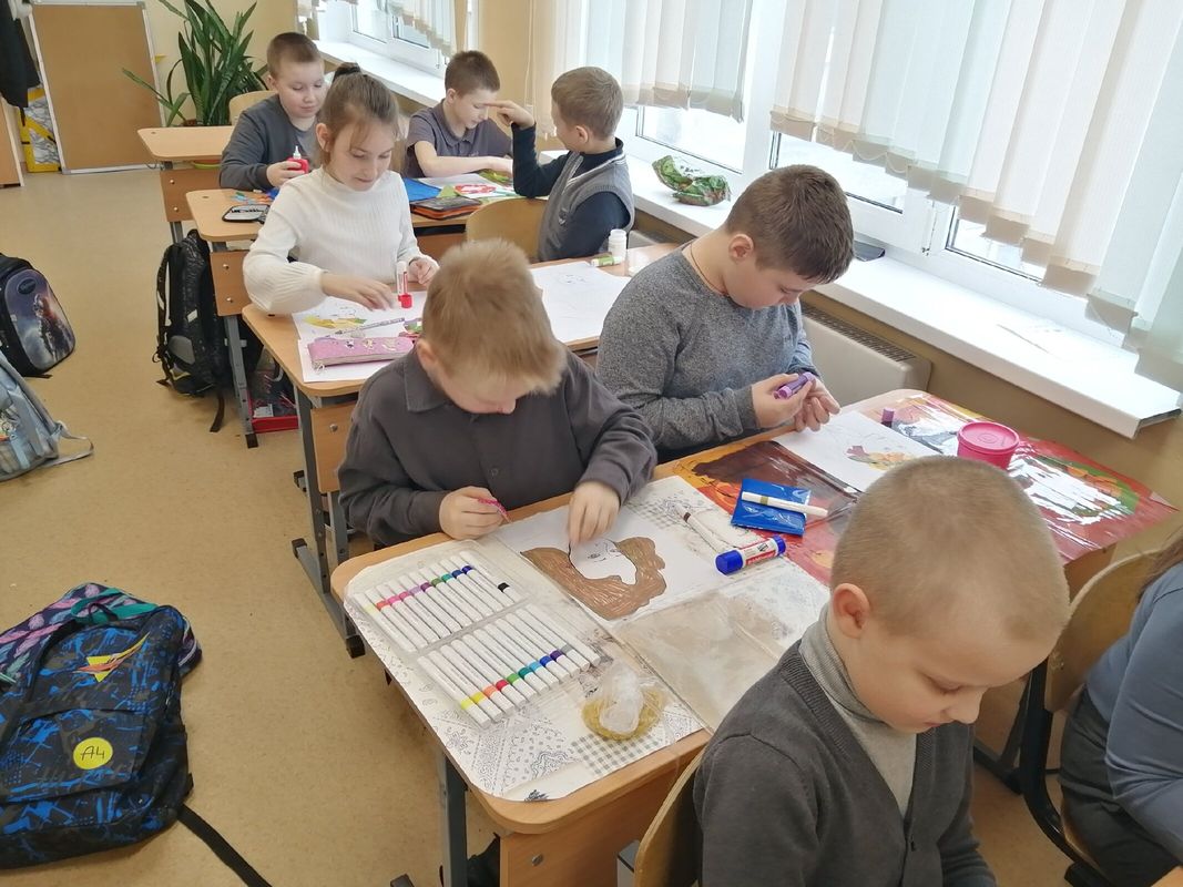С помощью шаблонов, подручного материала (бумага, вата, сухоцветы), клея и цветных карандашей, учащиеся создали свои творческие работы.