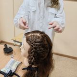 Обучающиеся успешно освоили такие элементы плетений из волос, как дорожка с односторонним плетением, дорожка с двухсторонним плетением, дорожка с выпуском свободной пряди, а также выполнение цветов из пряди волос для украшения причёсок.